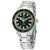 Stainless steel case with a stainless steel bracelet. Uni-directional rotating stainless steel bezel with an inlaid green ceramic ring. Green dial with luminous silver-tone hands and index hour markers. Minute markers around the outer rim. Dial Type: Analog. Luminescent hands and markers. Date display at the 3 oclock position. Swiss ETA C07.611 automatic movement with an 80-hour power reserve. Scratch resistant sapphire crystal. Screw down crown. Solid case back. Round case shape. Case size: 42 mm. Case thickness: 12.1 mm. Band width: 21 mm. Fold over clasp. Water resistant at 300 meters / 1000 feet. Functions: date, hour, minute, second. Additional Info: original box, manual (complete accessories). Captain Cook Series. Luxury watch style. Watch label: Swiss Made. Rado Captain Cook Automatic Green Dial Mens Watch R32105313.