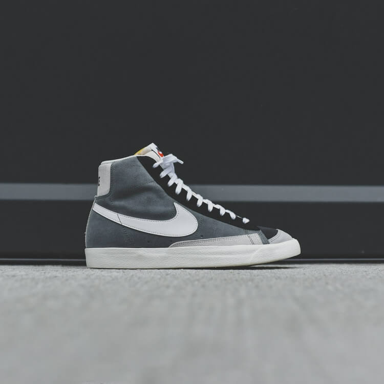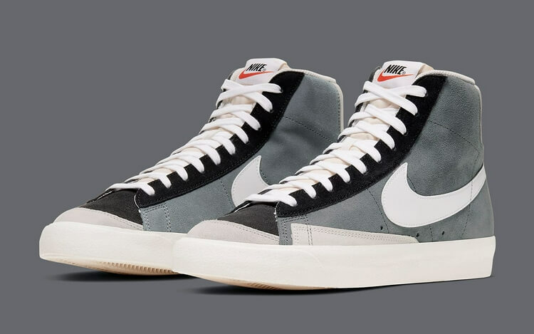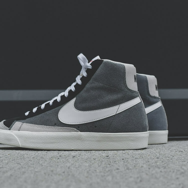 Nike Blazer 77 黑灰是今年 Nike 主打款之一,是对 Nike 在 1977 年发售的 Vintage 版本进行复刻而成,Blazer 77 与普通 Blazer 明显的区别在于,鞋头多了一块月牙包边,侧边多了一块三角区域补强。