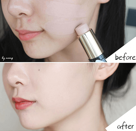 这款粉底棒的遮瑕效果也很不错,一般的瑕疵都能被遮盖掉,痘印、毛孔之类也能通过重点点涂叠加然后拍开的方式遮盖,并且不会拔干、起皮。