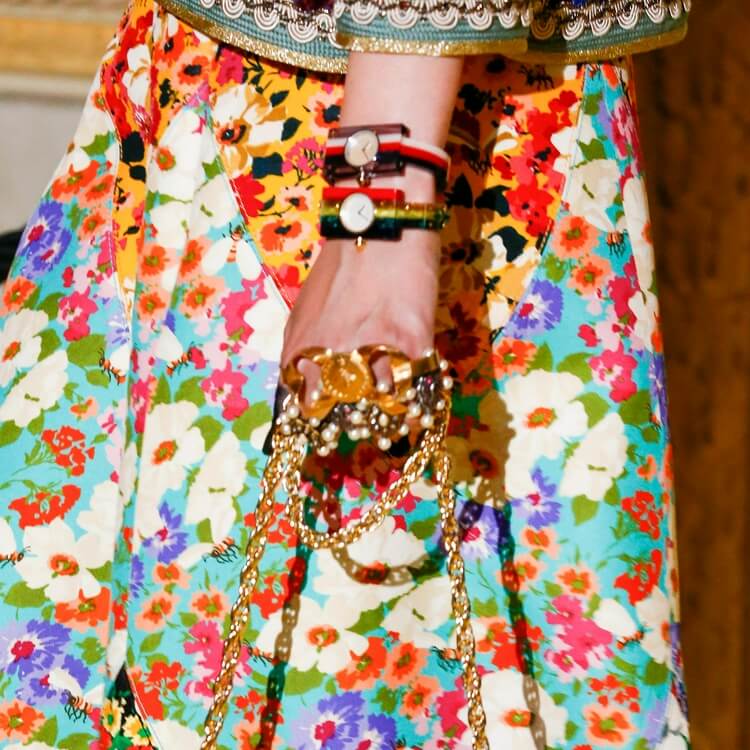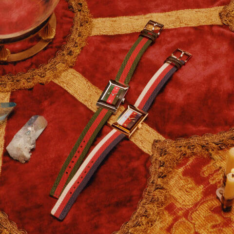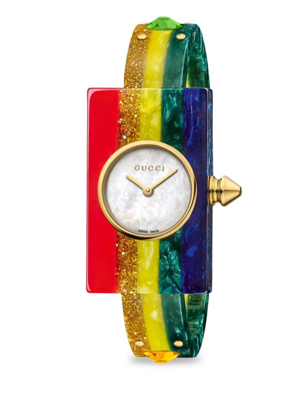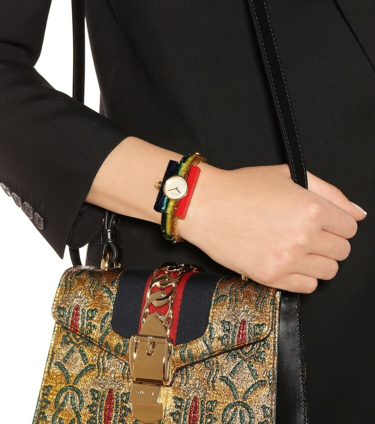 除了包袋和鞋子,Gucci的配饰非常也够吸睛。本篇为大家介绍一款超美的彩虹腕表。它是Gucci 2017春季的商品,从一推出就成为它家各大海报和秀场出镜率超高的一款腕表。