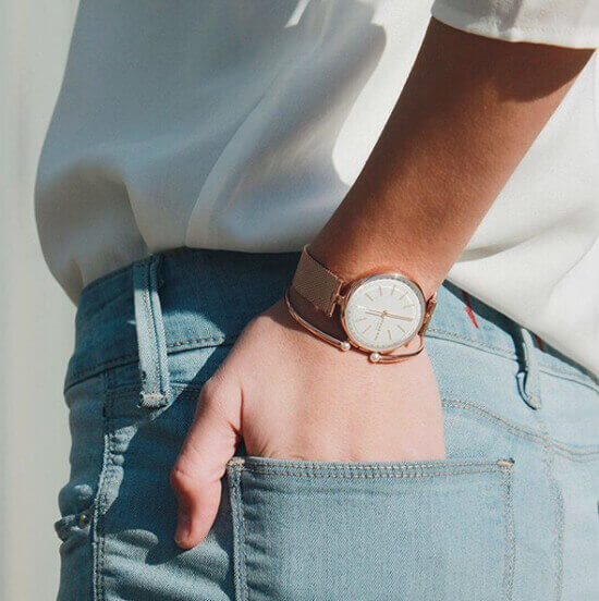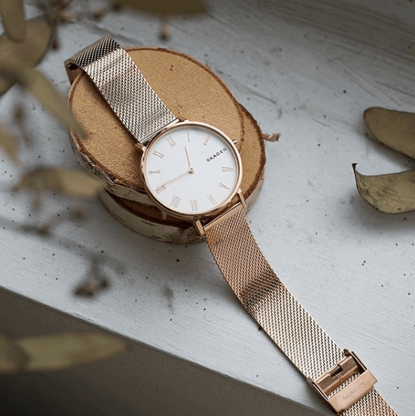 如果偏好极简风,那么除了DW,你还有个更清新小众的选择——Skagen。每一款腕表都由丹麦名表设计师设计配置,简约但充满清新唯美的北欧风。相比之下,比起DW,Skagen多了份典雅与低调的奢华。