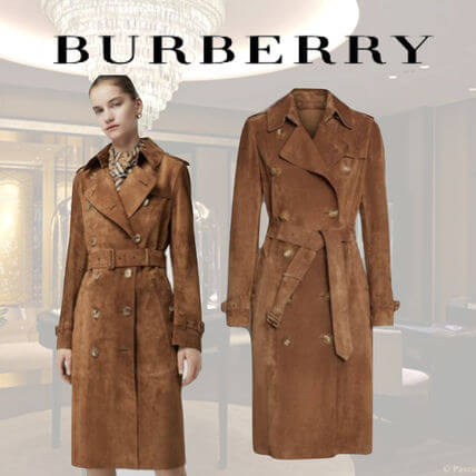 ▴ 麂皮双排扣风衣,深棕色很沉稳,麂皮雾面质感有很复古。