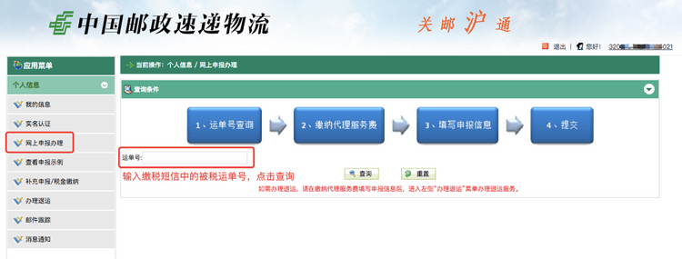 下面是以关邮沪通官网为示例(小程序缴纳流程同理)