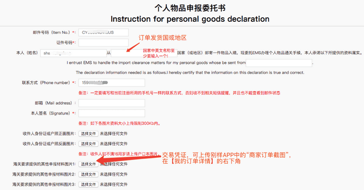 支付完成后,就可以填写申报啦>> 海关要求提供的其它申报材料图片:可上传APP内【我的订单详情】右下角【商家订单截图】中的截屏>> 申报邮件明细信息:请看下面的表格。