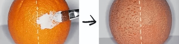 橘子的虚线左侧是涂上粉底液,虚线右侧是先涂上妆前乳、再上粉底液后的结果,毛孔几乎都不见了😱。实验结果说明,先上妆前乳、再上粉底液后的效果好很多,凹凸不平的坑洞都几乎掩饰了。