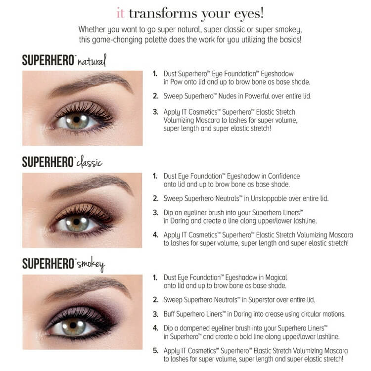 实际上,想要依靠彩妆品来起到抗老作用,意义真的不大。但是可以肯定的是It Cosmetics的彩妆品成分都很让人安心,毕竟她家的“伪素颜”CC霜、修复润护唇膏、毛孔拜拜蜜粉都是敏感肌、痘肌女孩可以真正放心使用的温和卓效彩妆品。这盘号称如击败岁月的超级英雄般的眼影是否能够抗老真的见仁见智,但是粉质一定成分比较安全。