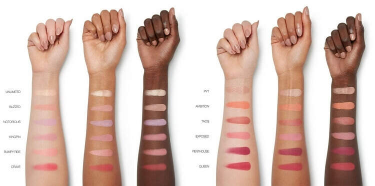 I 盘的色调清新粉嫩,总体偏冷色调:• Unlimited 珠光浅粉色,可用做高光• Buzzed 哑光珊瑚色• Notorious 哑光薰衣草色,上脸后则呈浅紫粉色• Kingpin 哑光玫瑰粉色• Bumpy Ride 细闪糖果粉色• Crave 哑光亮珊瑚色