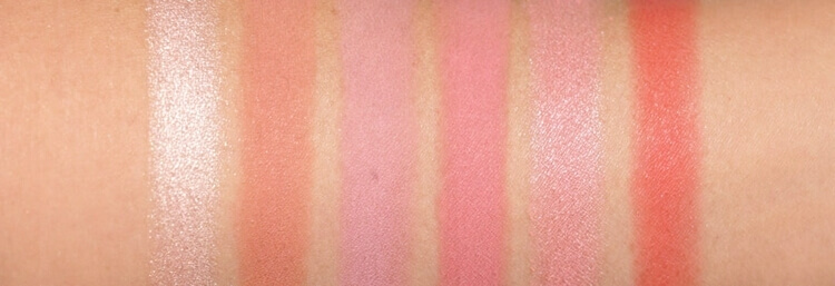 两款颊彩盘都包含6颗颜色,并且都对暖皮很友好!质地不仅有哑光,还有珠光。哑光质地显色度和延展性特别棒,珠光很细腻,日常通勤或者约会,随便哪盘都能满足你。