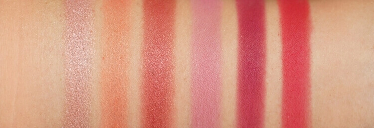II 盘配色更加浓郁元气:• PYT 金属光泽玫瑰金色• Ambition 蜜橘色,略带细腻珠光• Taos 锈红色带金色珠光• Exposed 哑光烟熏粉色• Penthouse 哑光树莓色• Queen 哑光宝石红色