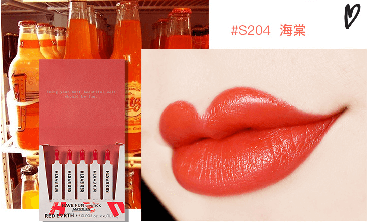 Red Earth的火柴口红已经在欧美风靡一阵了,火柴盒般的外观,质感复古,并且十分轻便,随身携带很easy!火柴口红本身也十分可爱,火柴柄可以方便拿捏,火柴头就是口红的膏体啦!