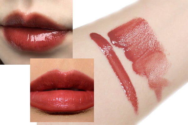 于手臂上试色时,细看会发现这唇蜜带点微妙的闪片,实际上嘴是看不出任何亮片的。
