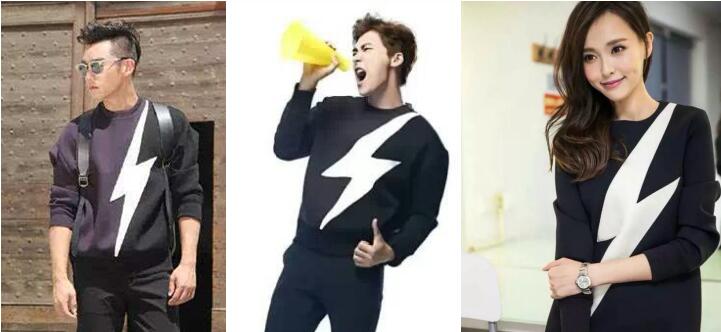 除了李易峰和郑恺,招牌闪电卫衣也吸引了唐嫣,引发了比较少见的男女明星撞衫。