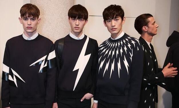 没错,小闪电正是Neil Barrett的标志性设计。这个意大利潮牌1999年率先以男装起家,简洁时髦的设计俘获了众多男明星的心。邓超的私服里,就有闪电款拉链卫衣。