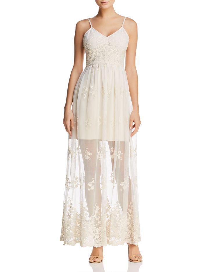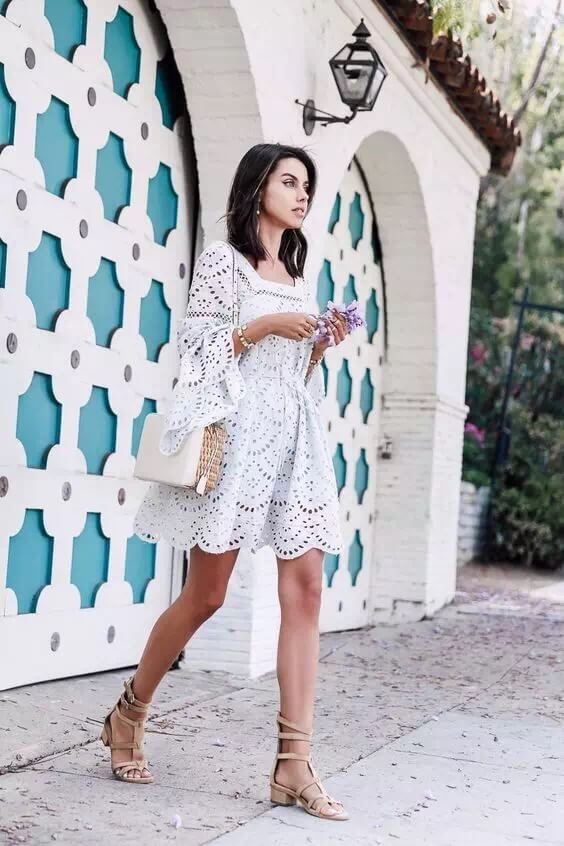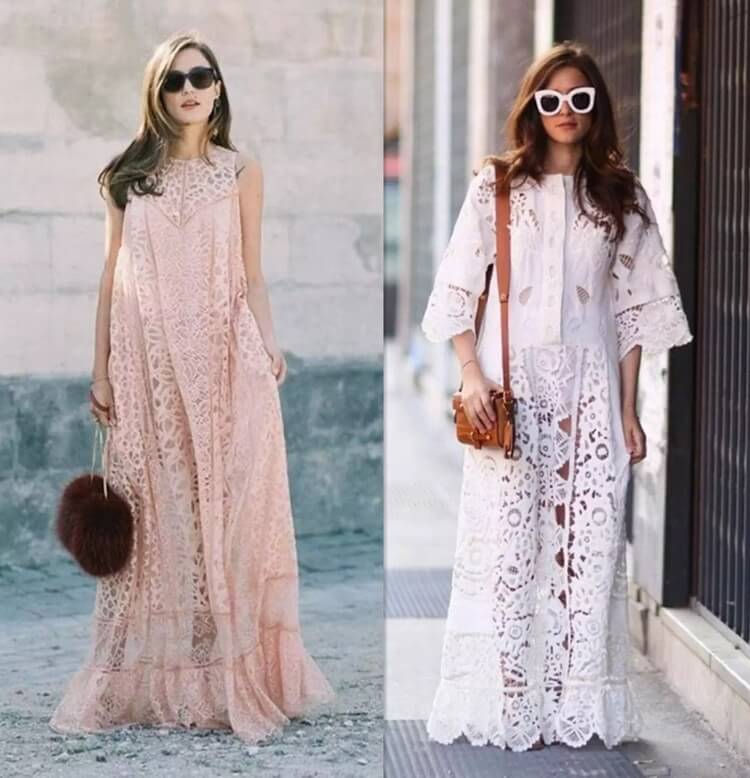 长到脚踝的连衣裙通常都自带典雅属性,如果是简单纯色的款式更是有一种可远观而不可亵玩的感觉。但是添加了蕾丝材质的长款连衣裙却给严肃典雅的风格中增加了一丝情趣和风情,再搭配低跟的凉鞋妥妥的上仙范儿。