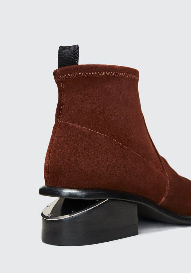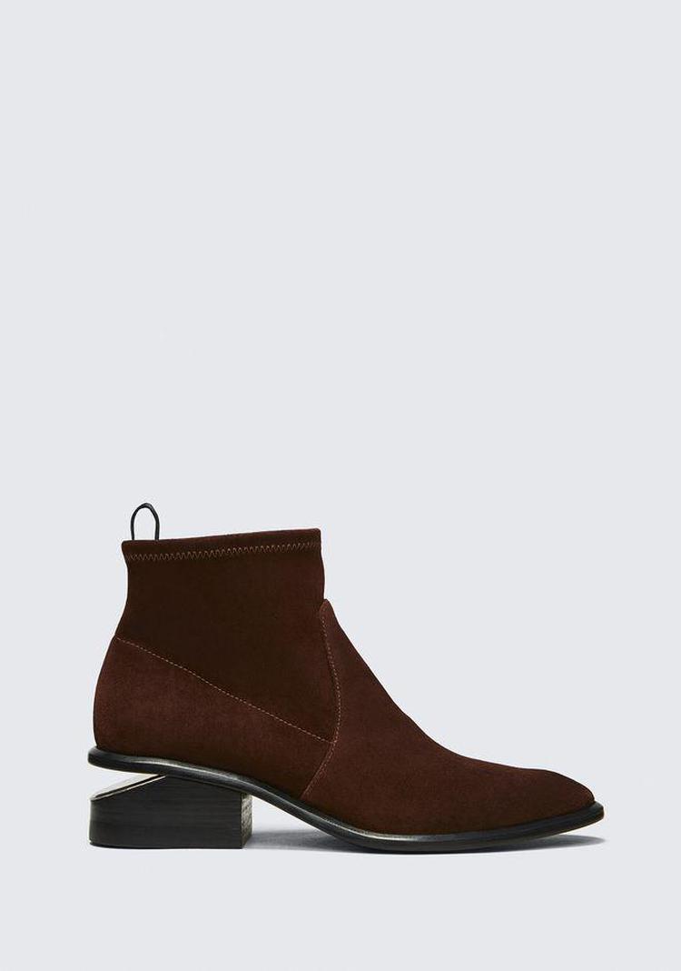 王大仁现在有一双麂皮棕色断根靴7折优惠,目前码全。这双短靴的断根处搭配的是银色金属,同时短跟有若隐若现的木纹,非常有气质。弹性松紧加麂皮,能紧紧包裹脚踝,超级显瘦。