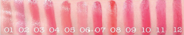 #07 Candy Pink,糖果粉红#08 Sweetie Darling,甜蜜达令#09 Cute Kiss,可爱之吻#10 Sweet as Candy,甜蜜似糖#11 Damson Jelly,洋李子#12 Grenadine,红石榴糖浆