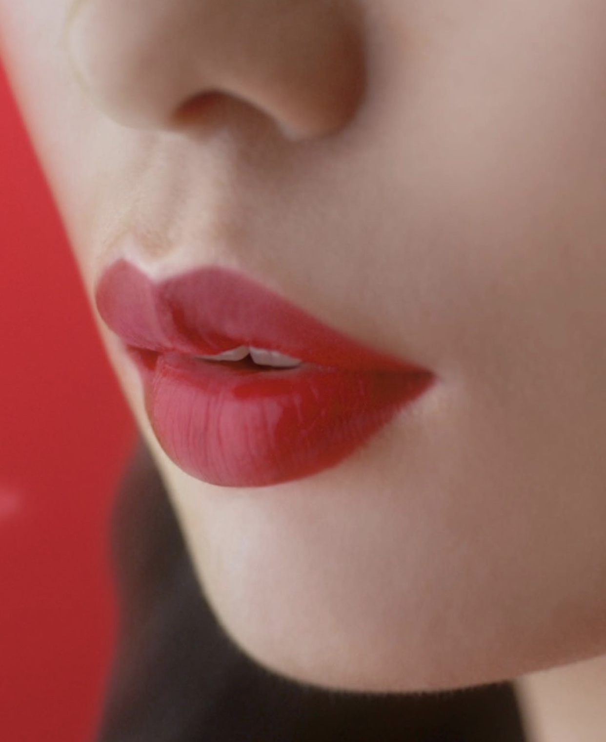 大红色的外壳,丝绒质地,上嘴顺滑显色,哑光复古正红色,非常有气质,膏体切割也很有质感。