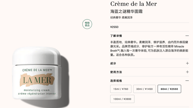 60ml大容量的经典精华面霜,🇨🇳国内官网售价¥2550😱在免税店购买也得1800+了,干敏肌肤冬天就靠它活命!