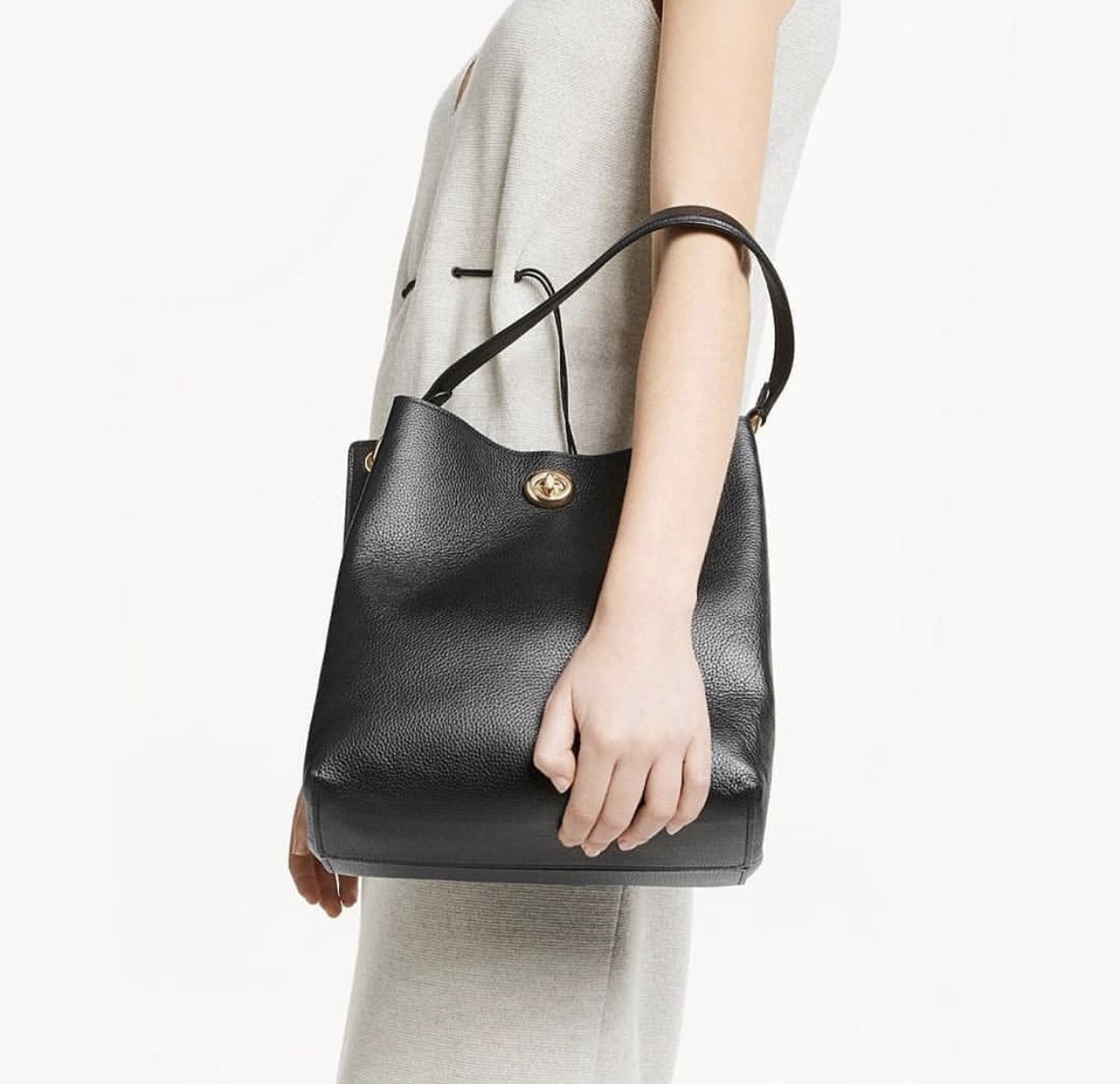 水桶包百搭款式,耐背耐脏,不用担心磕磕碰碰,荔枝纹皮质,手感高级,搭配上身不挑人。