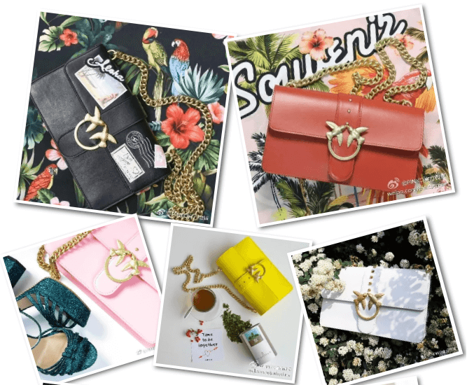 来自欧洲的经典品牌Pinko,自1980年成立以来,就推出了燕子包这一经典设计。