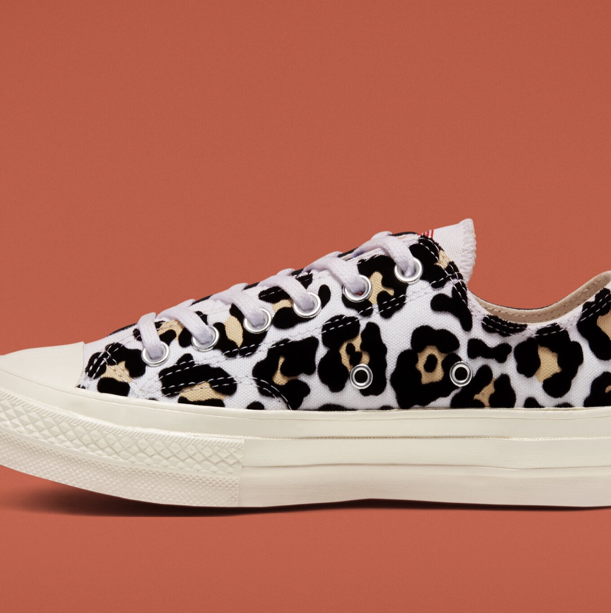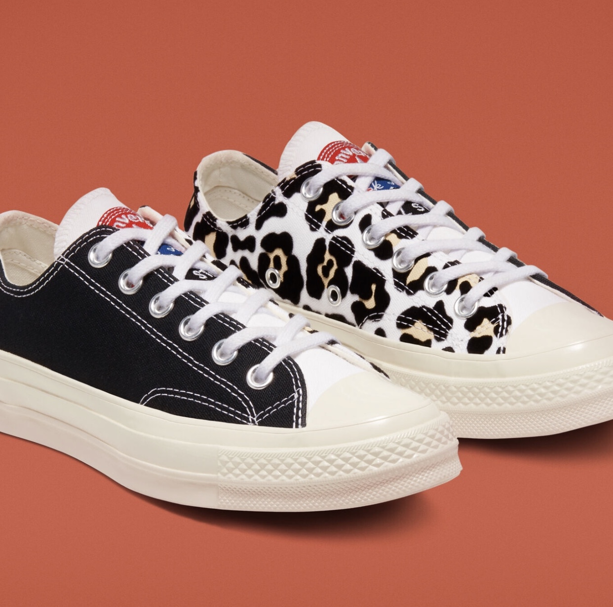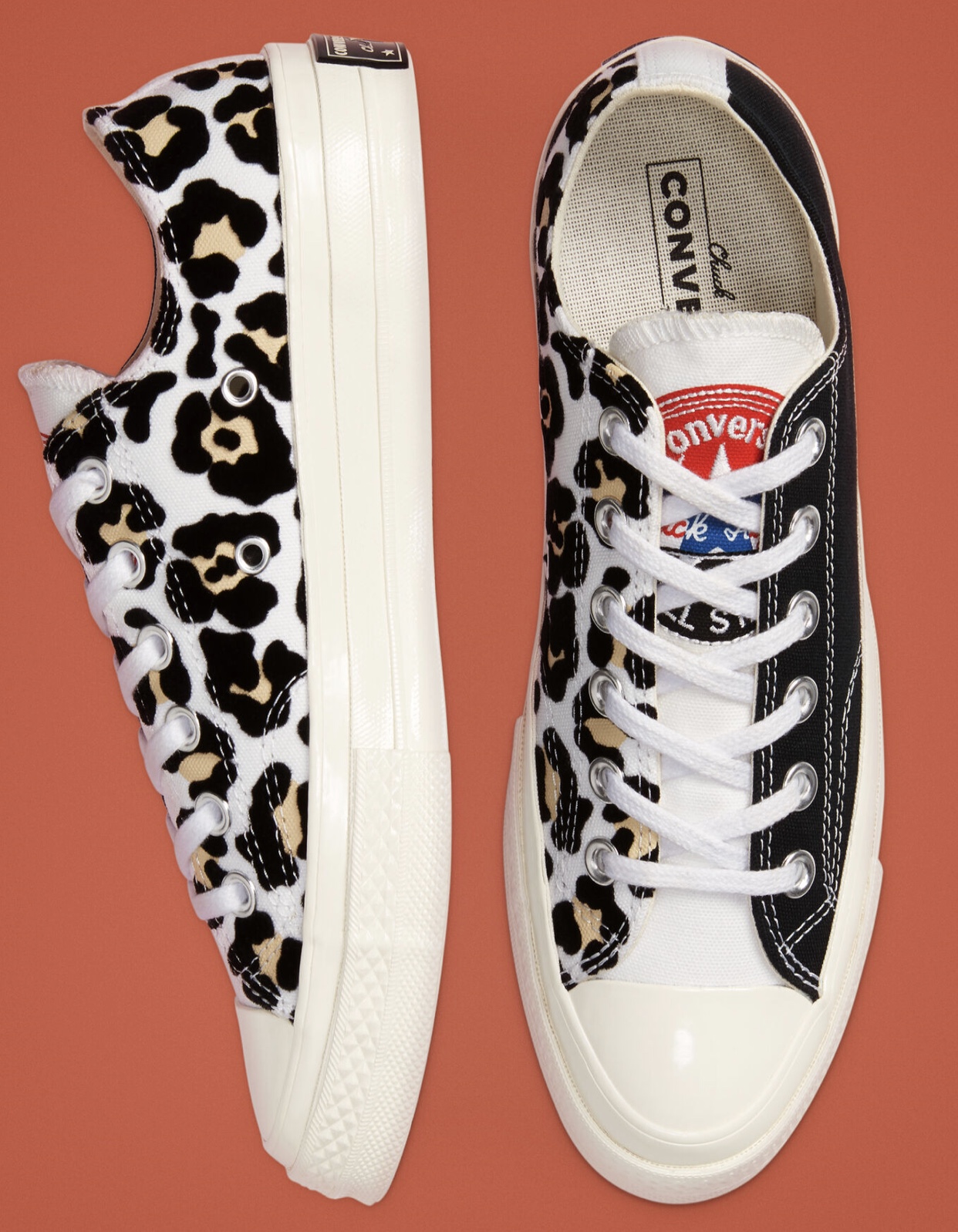 匡威这双春季新款Chuck 70 豹纹拼接低帮帆布鞋,创新的设计,可谓是一鞋难求,吸足了眼球。