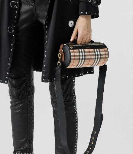 从去年开始大热的圆筒包,造型别致,风格复古备受时尚达人追捧,Burberry 也紧追其后,上线这款格纹圆筒包,成为爆款。