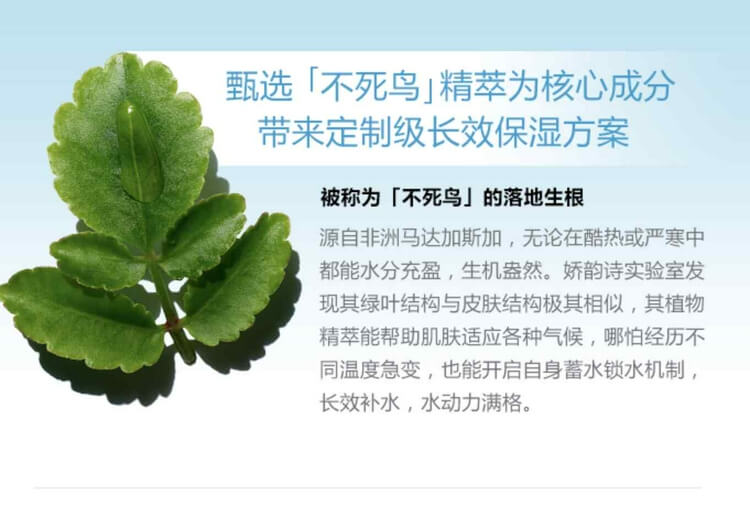 娇韵诗全新推出的“不死鸟”保湿系列特别适合现在春夏换季,能够长效锁住肌肤水分,让肌肤保持全天的水光感。