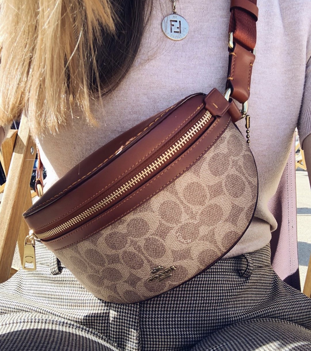 近几年胸包非常火爆,尤其是夏天出街一款时尚的胸包能为搭配加分不少,Coach老花腰包就是其中非常受欢迎的一款。