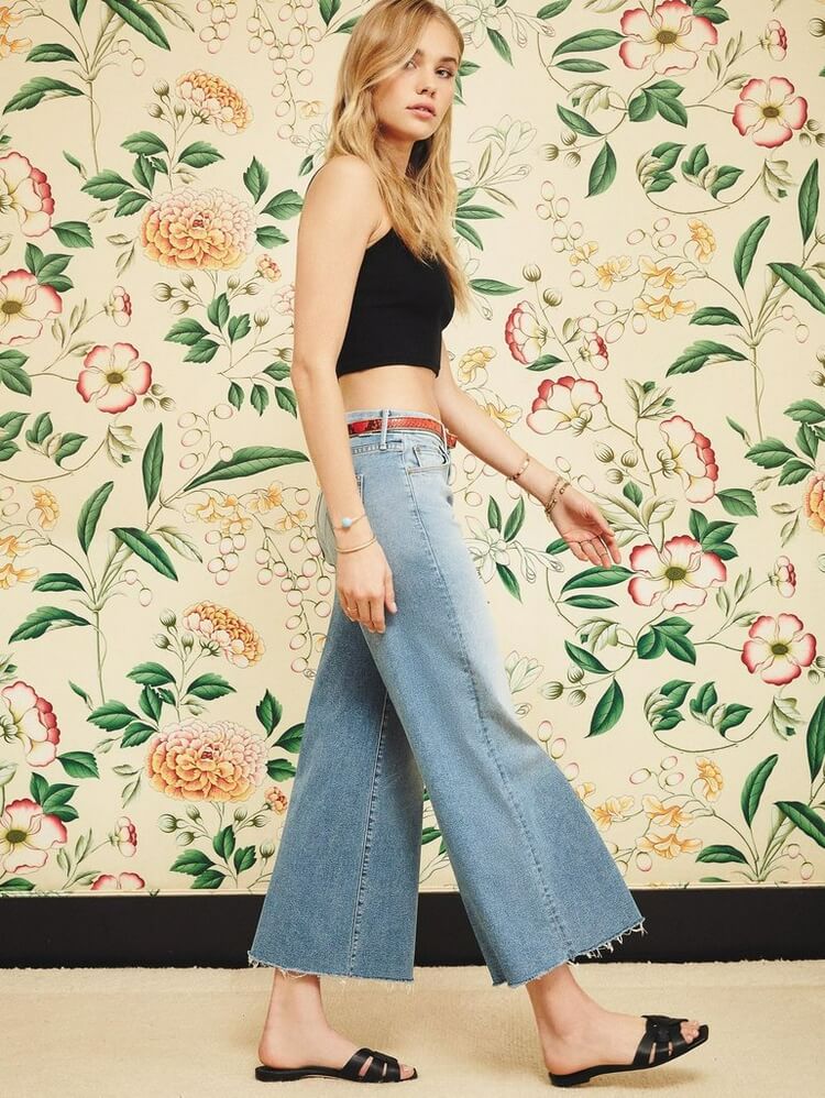阔腿裤作为时尚界的宠儿,已经被很多明星、时尚博主穿上街了,这款牛仔裤简单百搭,显高又显瘦。