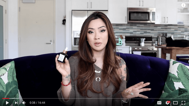 下面是Claire Marshall, 我个人很喜欢的亚裔youtuber, 她是典型的痘印油性肌肤, Sunday Riley是她三年前就开始推荐的, 出现在她多个爱用品视频中.