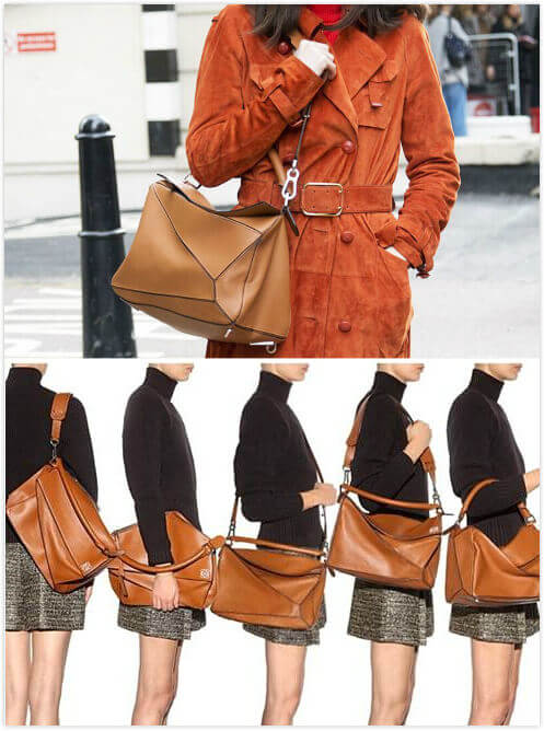 五种截然不同的实用方法集一身,这是不是间接的拥有了五个包?手提大气;侧背随意;横身活力;做背包个性;拆走肩带变成手拿包,也是相当有型!