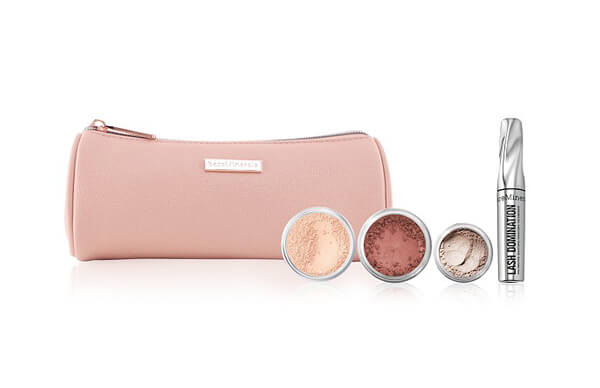 现购买bareMinerals商品满$60可得礼包五件套: • 10合1浓密睫毛液迷你装 (4.5ml) • 矿物亮肤定装散粉 (0.85g) • 矿物腮红, 色号: Warm Pink (0.57g) • 矿物单色眼影, 色号: Light Warm Sand (0.28g) • 化妆包一个