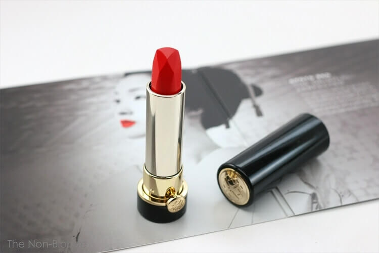 京都红的灵感源自日本艺伎的妆容,颜色是非常正的正红色,哑光质地,饱满有光泽。京都红外壳是黑色钢琴烤漆,质地高级非常有手感,像艺术品一样精致!上唇颜色比大红色稍微偏橘一点,非常显白。