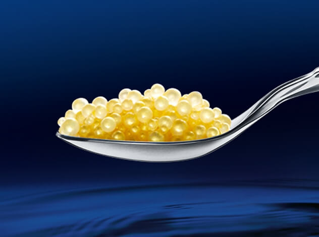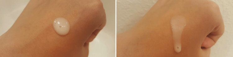 瓶子里是一颗颗亮晶晶金灿灿的鱼子精华,使用时要按下瓶盖处的小机关,然后就会有白色的液体和鱼子酱,其实是鱼子精华珍珠囊凝胶的包装设计,只要按下,珍珠胶囊就会溶解,摇匀后成为精华状。