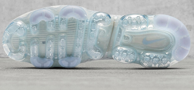 VaporMax最值得一提的就是气垫鞋底了,近几年推出的Air Max的鞋底都是全掌式气垫,这次的气垫位置是根据脚掌重点压力部分气垫位置,原来NIKE也走极简风格啊😂。