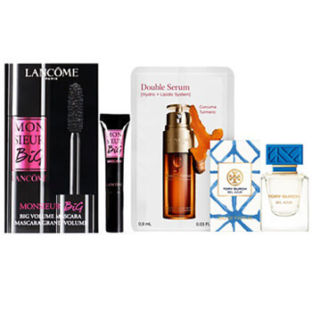 礼包可能会获得其中一样:- 兰蔻最新睫毛膏小样一支- 娇韵诗「黄金双瓶」一片装- Tory Burch 香水小样