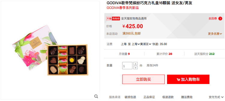 现在梅西百货有多款Godiva巧克力限时特惠,新品缤纷巧克力礼盒只要¥179哦!国内官方渠道的16粒版不仅口味没有美版多,且价格差距超大🙀!