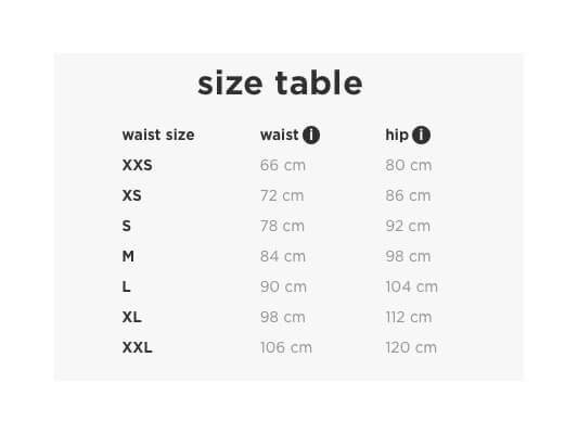 单位:厘米英文对应:size—尺码 waist—腰围 hip—臀围