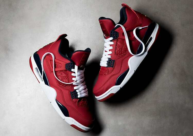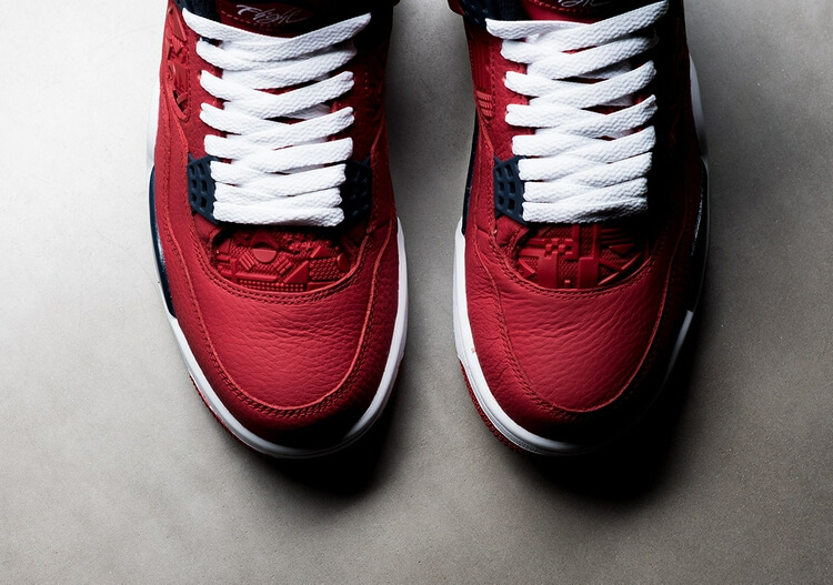 这双AJ4 FIBA除了超吸睛的Gym Red为主体,也运用了近期很火的黑曜石加分,放大仔细一看,原为透气网格的部分,则运用了参赛国家的国旗为灵感转化为图腾元素,这种手法算是首次出现于AJ鞋款身上。