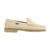 Visible stitching, logo on the side, loafers, round toe, low heel, closed