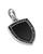 A sterling silver shield pendant with a black onyx center surrounded by pavé black diamonds