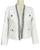 Open-front design with intricate jewel embellishments. Tweed fabric for a classic and textured look. Dual chest pockets with gem detailing. Long sleeves.