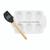 Muffin Tray and Spatula Set. Dimensions: 12" x 8". Holds half a dozen generously sized muffins. The tray reads in black writing "Can't nobody tell me muffin". Paired with a wood and silicone spatula that reads "Stud muffin".