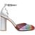 Flowy dresses, cropped pants, and even jumpsuits... this sandal works with them all! Step into style with the Shining Sunshine Block Heel Sandal by BUTRICH, a dazzling addition to any wardrobe. This sandal features a multi-colored metallic design with a prominent silver back, trim, and heel, and a striking multi-colored metallic toe. It includes a practical ankle strap and boasts a chic 3-inch block heel for a stable yet stylish lift. Ideal for women seeking a standout piece, this sandal is crafted with a pointed toe to elevate any outfit.