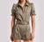 Throw it on and go! Embrace easy elegance with the Natalia Gabardine Romper by Generation Love, a chic addition in olive for your spring wardrobe. This solid-patterned romper is crafted with trendy short puff sleeves in a crisp blend of 52.5% Polyester, 22% Cotton, 22% Lyocell, and 3.5% Spandex. Featuring a 30 3/4" length and 3" inseam, it offers a flattering fit with a front fly zipper and button closure. Care: Professional dry clean only.