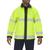 Introducing the men's Reversible Rain Jacket by Blauer, designed in hi-vis yellow with black for high visibility and durability. This 31 1/2" long jacket features long sleeves and is crafted from one-ply Techlite urethane-coated 200-denier oxford nylon, offering waterproof and breathable attributes. The jacket includes a button closure and practical pockets, complemented by SCOTCHLITE™ reflective trim for enhanced safety. It is machine washable on a gentle cycle, with low tumble dry instructions to maintain its quality.
