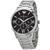 Stainless steel case with a stainless steel bracelet. Fixed stainless steel bezel. Black dial with luminous silver-tone hands and index hour markers. Roman numerals mark the 3, 6 and 9 oclock positions. Minute markers around the outer rim. The Emporio Armani logo appears at the 12 oclock position. Dial Type: Analog. Luminescent hands. Date display between the 4 and 5 oclock positions. Chronograph - three sub-dials displaying: 60 second, 30 minute and 24 hour. Quartz movement. Scratch resistant mineral crystal. Pull / push crown. Solid case back. Round case shape. Case size: 44 mm. Case thickness: 10 mm. Band width: 22 mm. Fold over clasp with a push button release. Water resistant at 50 meters / 165 feet. Functions: chronograph, date, hour, minute, second. Casual watch style. Watch label: Japan Movt. Emporio Armani Giovanni Chronograph Quartz Black Dial Mens Watch AR11208.