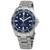 Stainless steel case with a stainless steel bracelet. Uni-directional rotating stainless steel bezel with an inlaid blue ceramic riing. Blue dial with luminour silver-tone hands and dot hour markers. Minute markers around the outer rim. Dial Type: Analog. Luminescent hands and markers. Date display at the 3 oclock position. Automatic movement with an 80-hour power reserve. Scratch resistant sapphire crystal. Solid case back. Round case shape. Case size: 43 mm. Band width: 21 mm. Deployment clasp with a push button release. Water resistant at 300 meters / 1000 feet. Functions: date, hour, minute, second. Ds Action Diver Series. Dress watch style. Watch label: Swiss Made. Certina DS Action Diver Automatic Blue Dial Mens Watch C0326071104100.