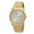 Gold-tone stainless steel case and bracelet. Fixed gold-tone stainless steel bezel. Champagne dial with gold-tone hands and index hour markers. Arabic numeral minute markers (at 5 minute intervals). Dial Type: Analog. Luminescent hands and markers. Date display at the 3 oclock position. Citizen Caliber Eco-Drive E111 eco-drive movement. Scratch resistant sapphire crystal. Pull / push crown. Solid case back. Round case shape, case size: 41 mm. Band width: 22 mm. Fold over clasp with a safety release. Water resistant at 100 meters / 330 feet. Functions: date, hour, minute, second, solar-powered. Peyten Series. Casual watch style. Watch label: Japan Movt. Citizen Peyten Eco-Drive Champagne Dial Mens Watch BM7532-54P.