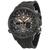 Black-plated stainless steel case with a black rubber strap. Fixed black ion-plated bezel. Black dial with luminous orange hands and index hour markers. Minute markers around the outer rim. Dial Type: Analog-digital. Luminescent hands. Perpetual calendar. Citizen caliber Eco-Drive U680 eco-drive movement. Scratch resistant mineral crystal. Pull / push crown. Solid case back. Round case shape. Case size: 48 mm. Case thickness: 15 mm. Band width: 23 mm. Band length: 8 inches. Deployment with push button release clasp. Water resistant at 200 meters / 660 feet. Functions: atomic timekeeping technology with synchronized time adjustment available in 43 world cities, world time, perpetual calendar, perpetual calendar chronograph, 1/100 second chronograph, 3 hand, power reserve indicator, multiple alarms, GMT. Sport watch style. Watch label: Japan Movt. Item Variations: JY8035 04E, JY8035.04E, JY803504E. Citizen Promaster Navihawk A-T Eco Drive Black Dial Mens Watch JY8035-04E.